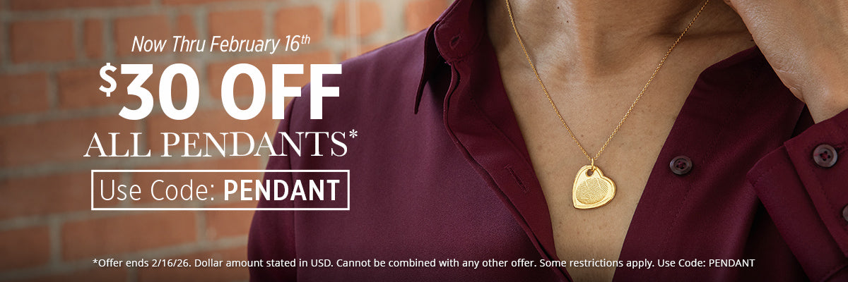 Give her a gift that means more with Jewelry and Keepsakes that are engraved with the fingerprint, handprint, footprint, or paw print of someone she loves. From personalized Pendants to custom Charms to heartfelt Teddy Bears, Bookmarks, and more, each of our gifts help connect her with a Loved One.