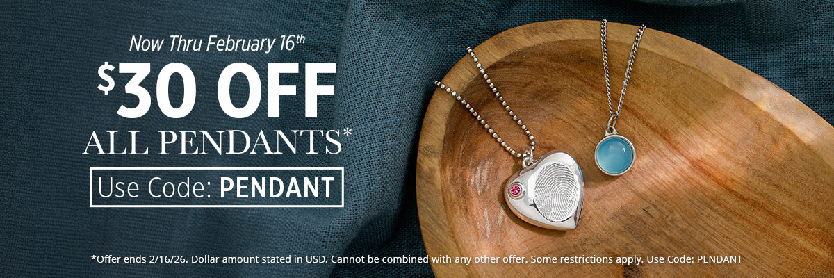 Our engraved Pendants are personalized with the texture and patterns that make each fingerprint unique, helping to further showcase your one-of-a-kind love in a touching way. Customize the Jewelry even further with your choice of accessories like a Chain, Premium Bail, Birthstone Charm, or Symbolic Charm.