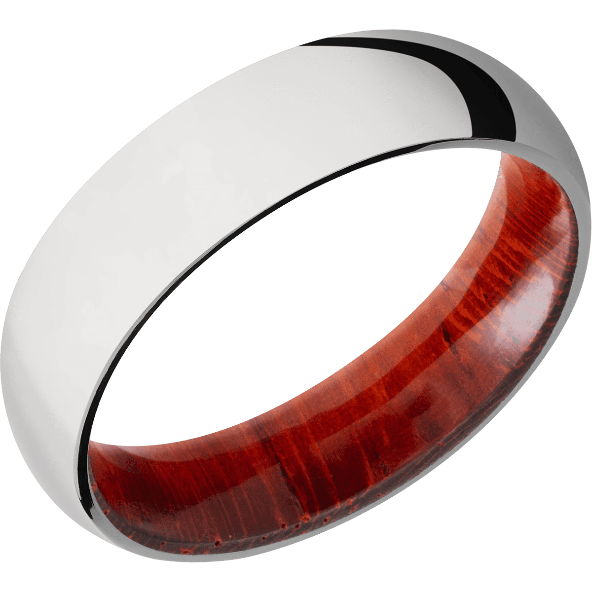 6 mm wide Domed Cobalt Chrome band featuring a Padauk sleeve.