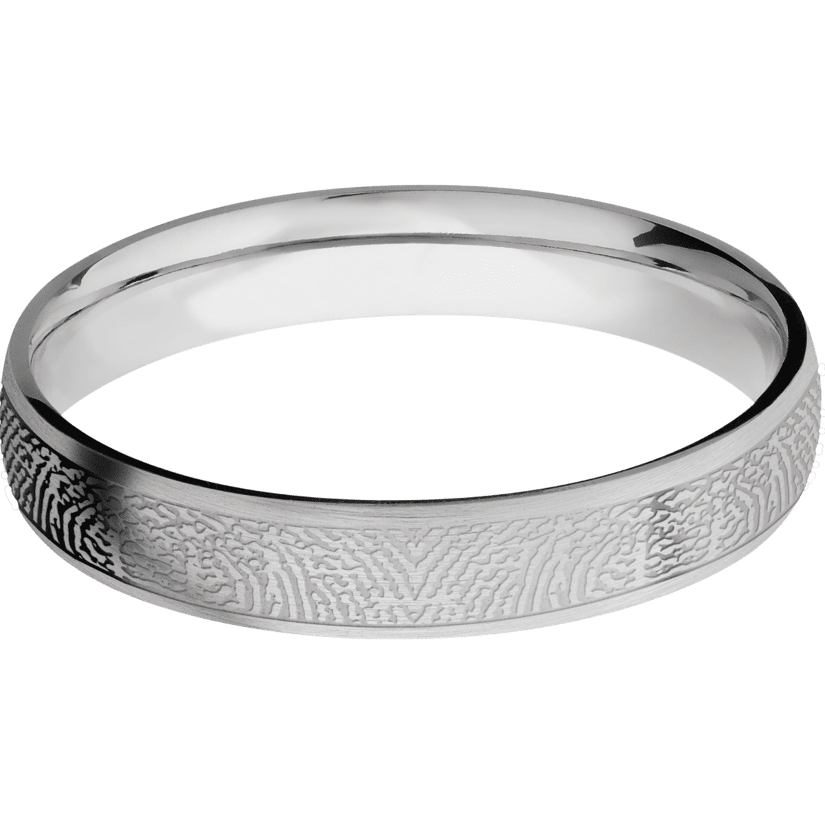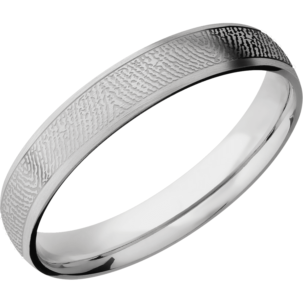 4 mm wide/Domed/Cobalt Chrome band with a laser carved Finger Print pattern.