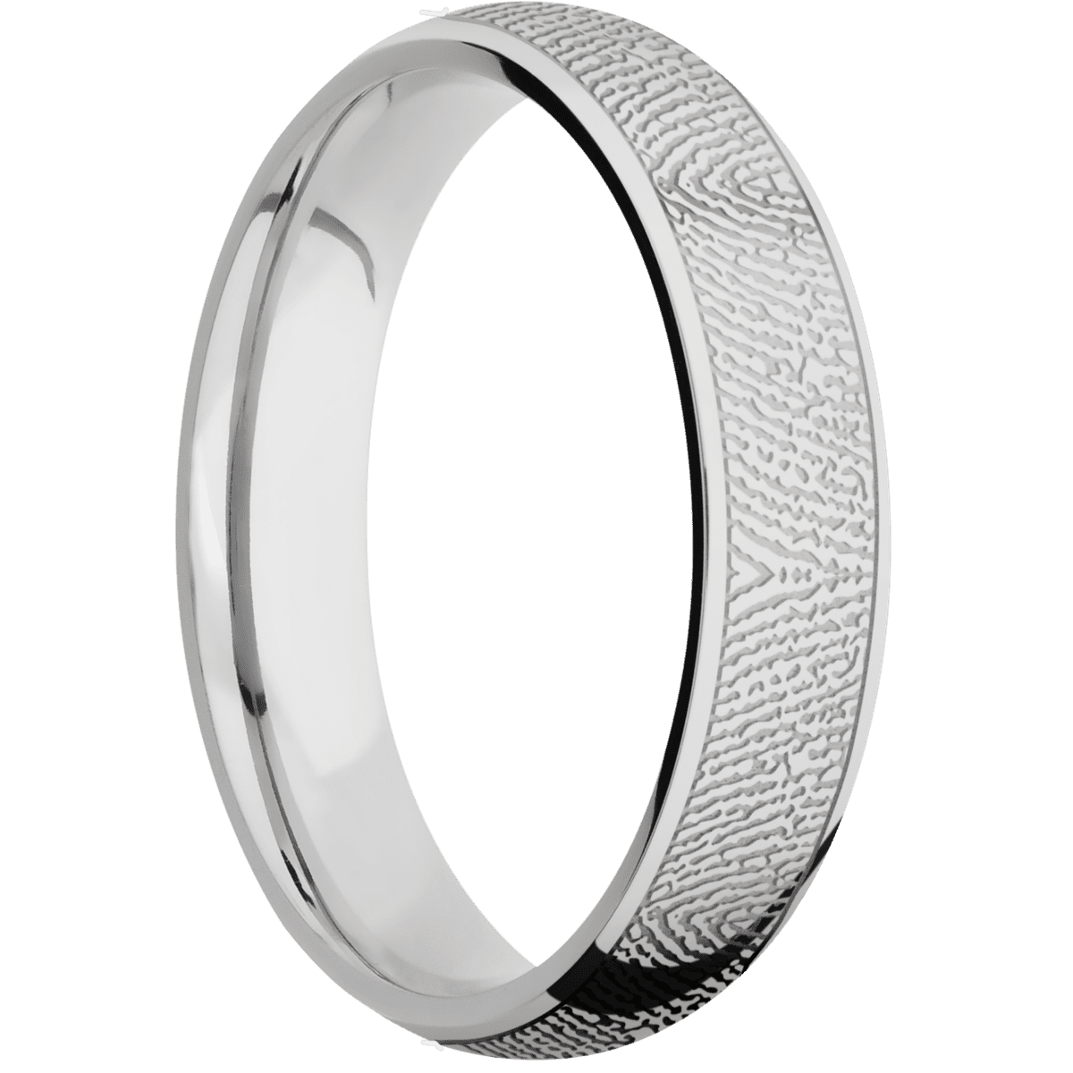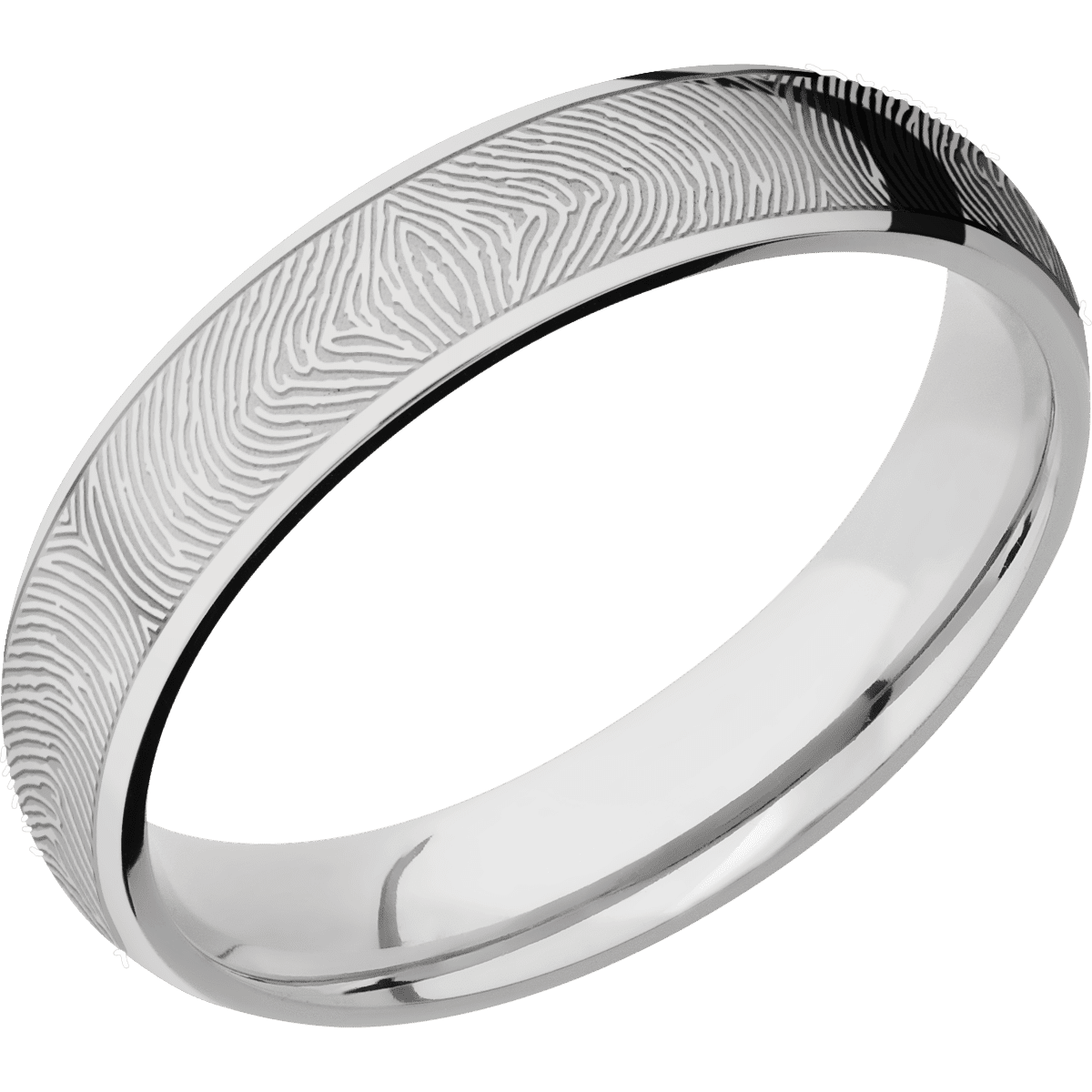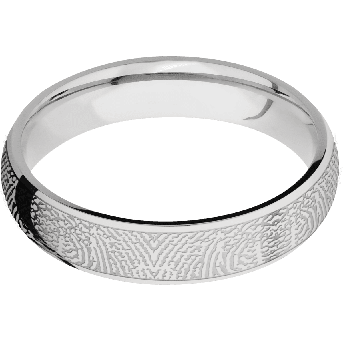 5 mm wide/Domed/Palladium Silver band with a laser carved Finger Print pattern.