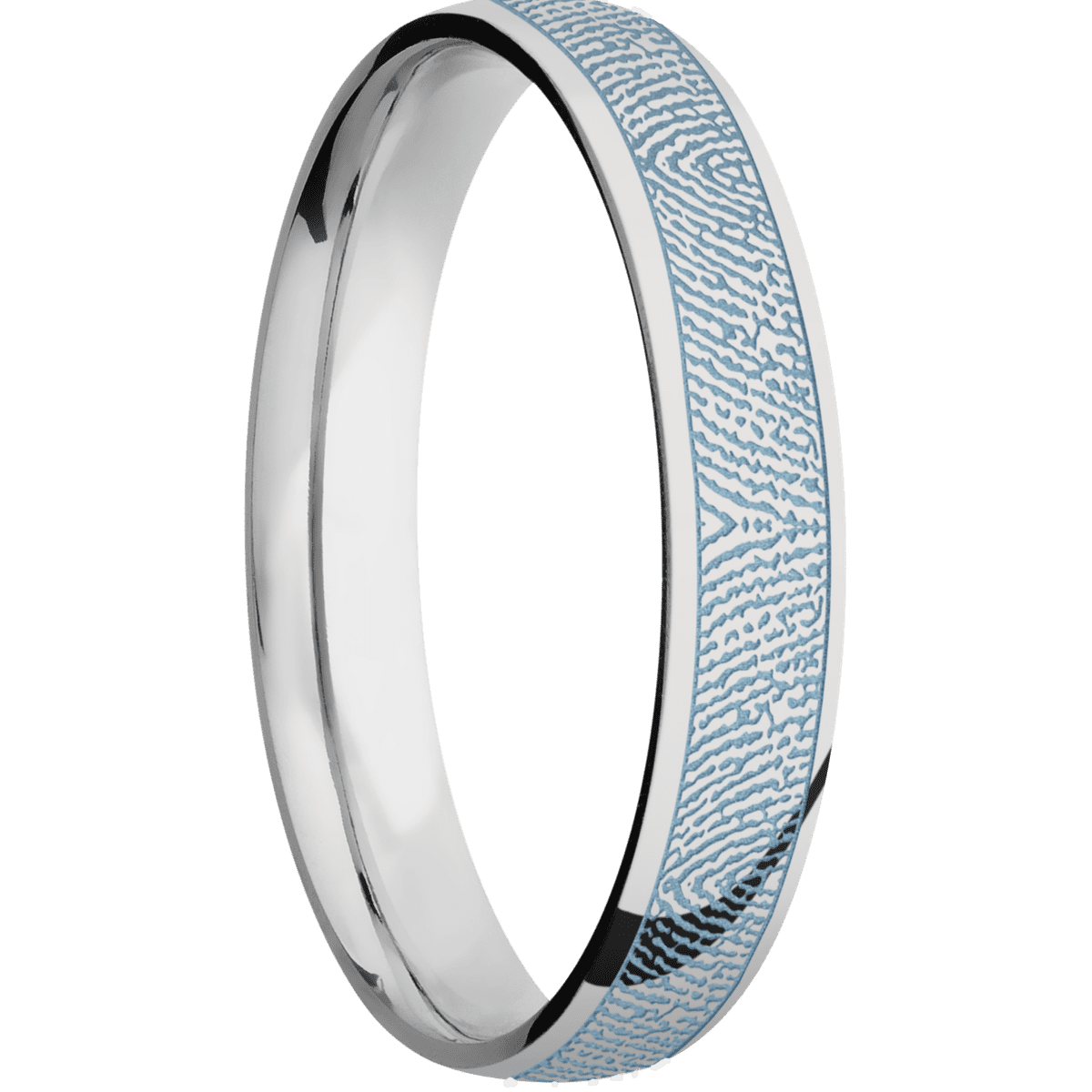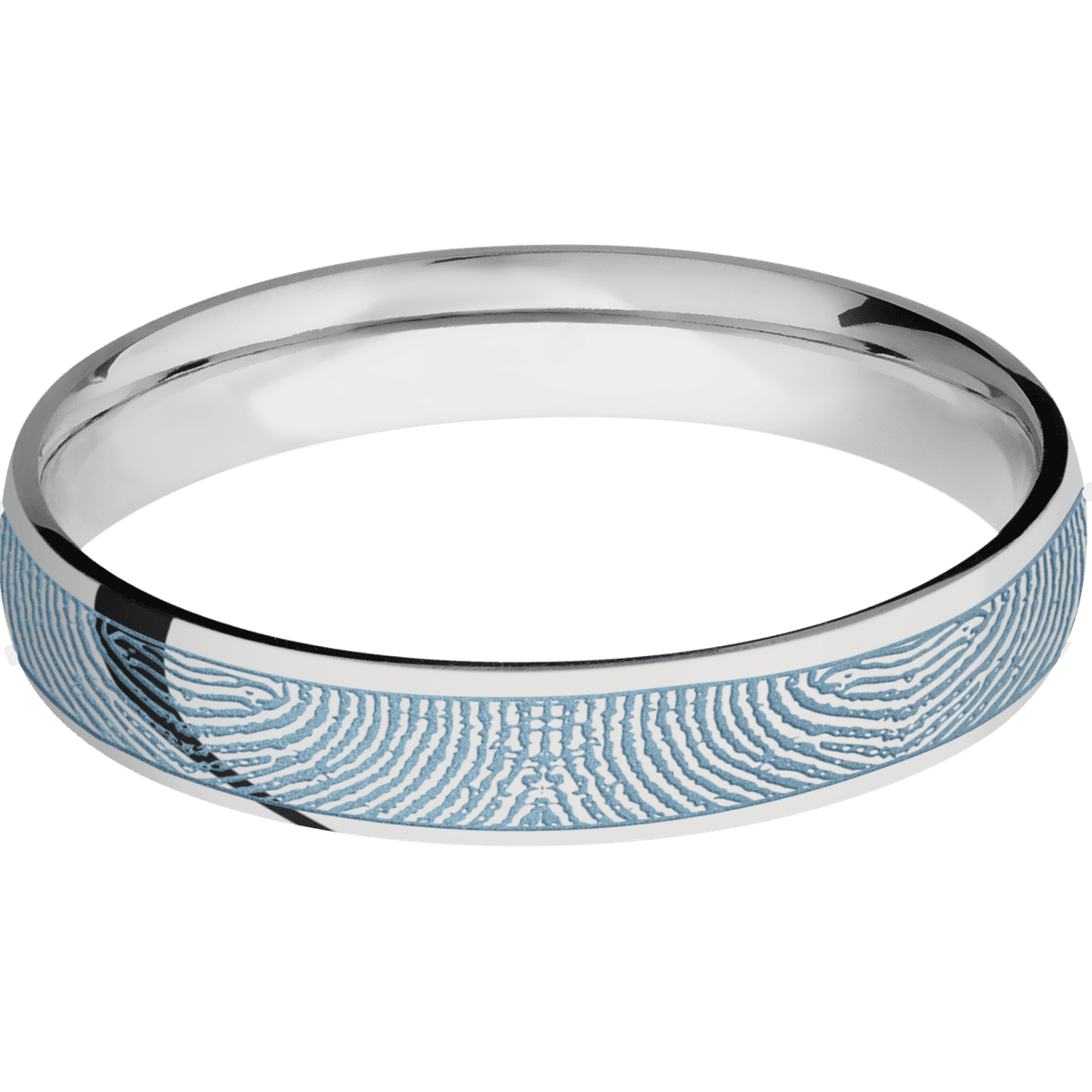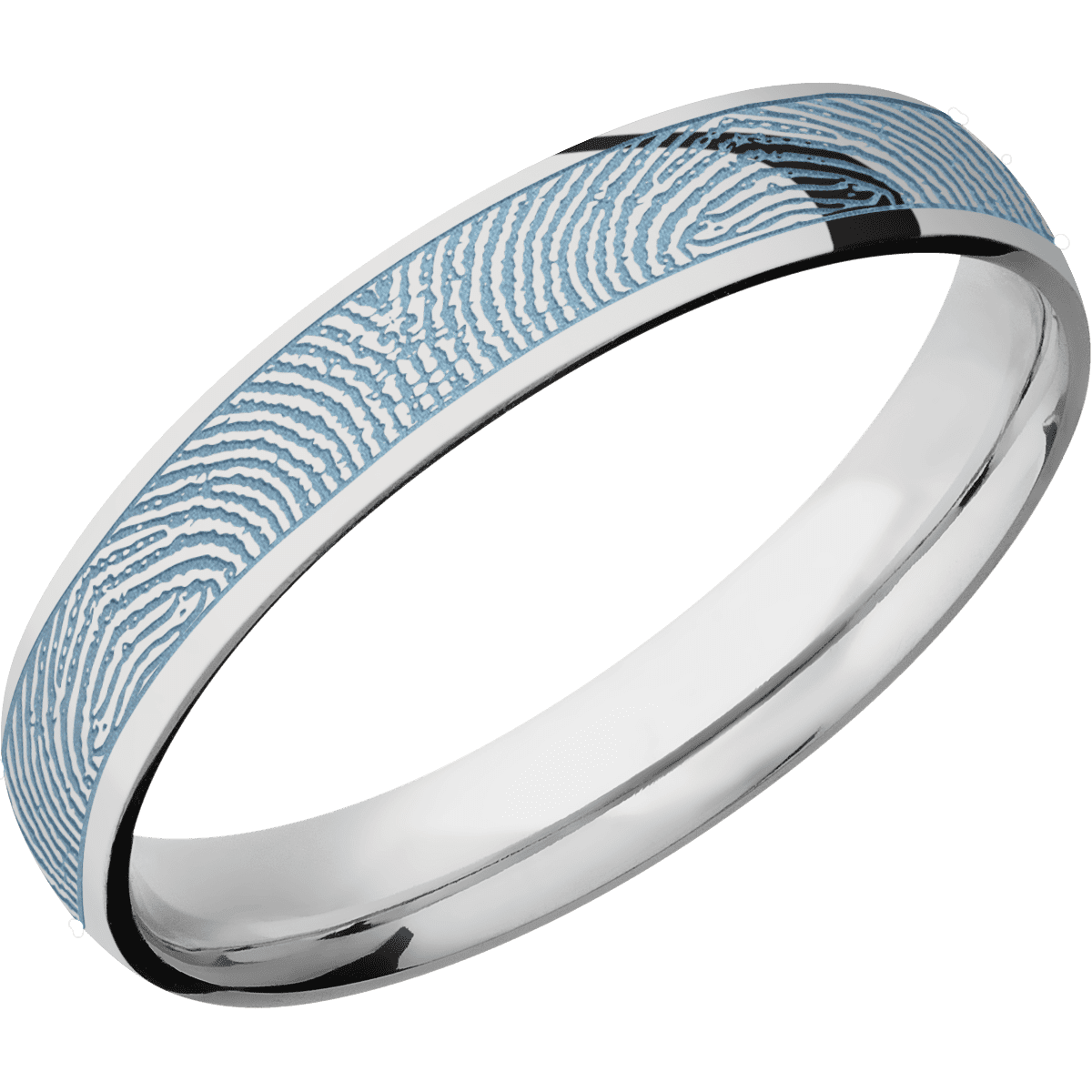 4 mm wide/Domed/Palladium Silver band with a laser carved Finger Print pattern.