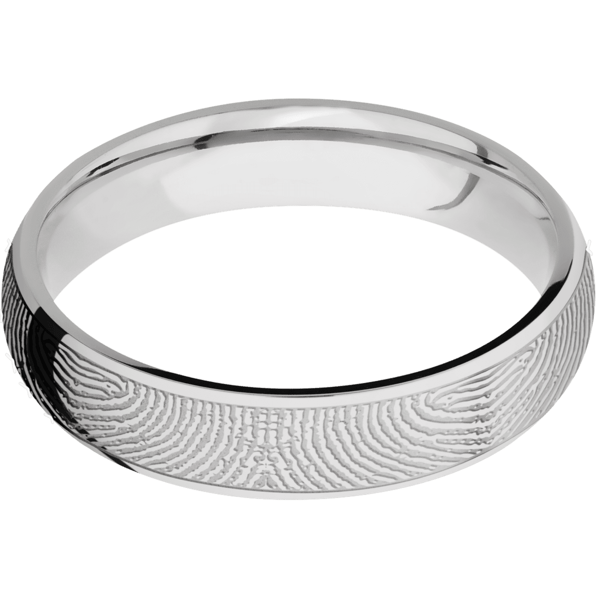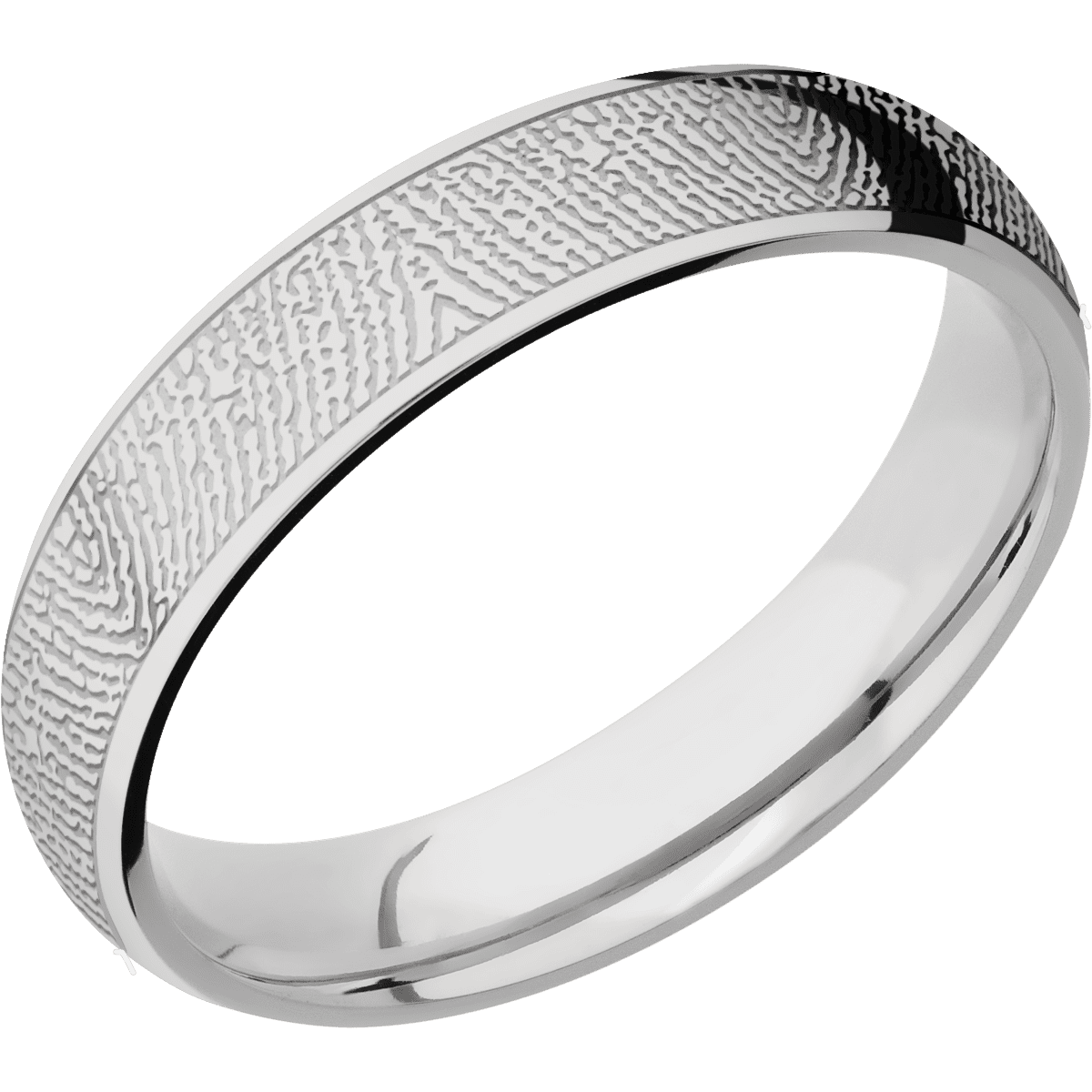5 mm wide/Domed/Palladium Silver band with a laser carved Finger Print pattern.