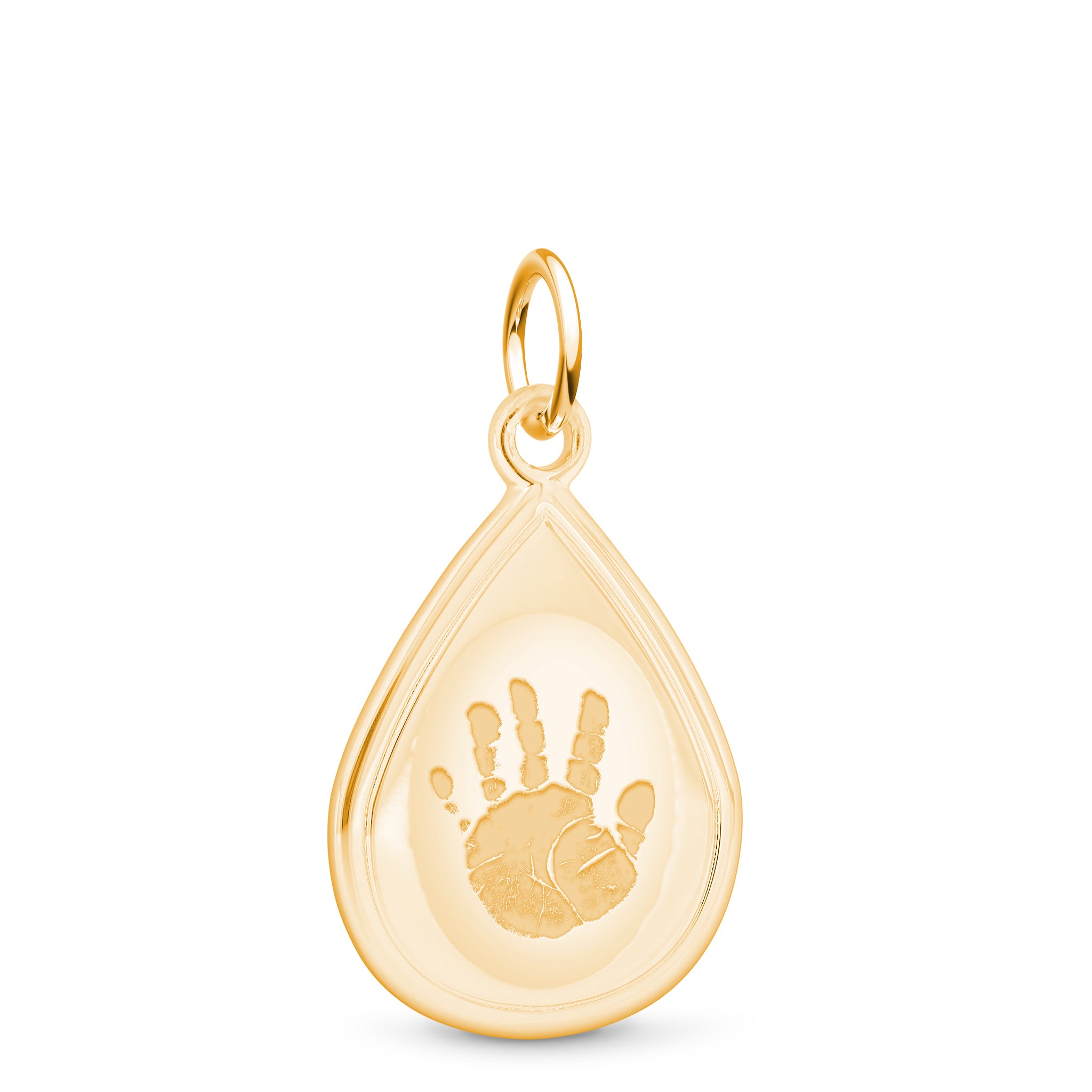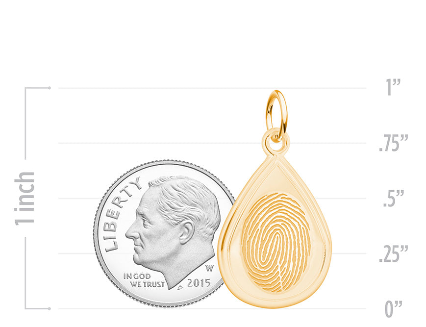 The presence of someone you love will forever be near, providing incredible comfort with a Fingerprint Charm in gleaming 14k Yellow Gold. Smaller and lighter than Pendants, our Tear Drop Charms can be worn on Necklaces. Each Charm is handmade to have a raised, rounded edge, and the engraved fingerprint patterned nestled in a debossed oval to suggest the light presence of a fingertip’s touch. These details come together to create a beautiful piece of meaningful Jewelry that is as unique as the person it represents. The perfect gift for family, our Charms can also be a touching memorial Keepsake that honors a lost Loved One.